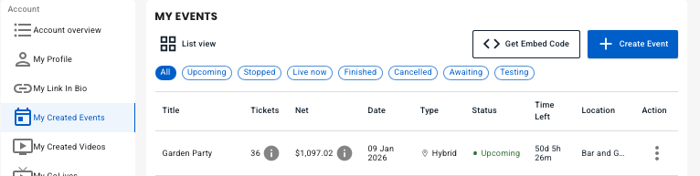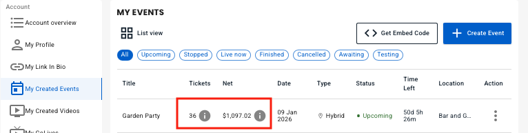 Using your artist dashboard, you can easily monitor in real-time sales data from your event.