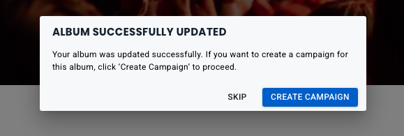 Anytime you make changes to an album, you will get a popup that allows you to create a campaign.