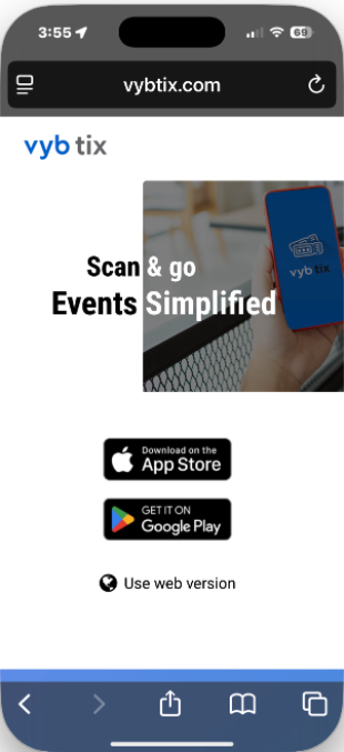 When it is time for your in-person app, you can use the web or mobile version of the vyb ticket scanning app.