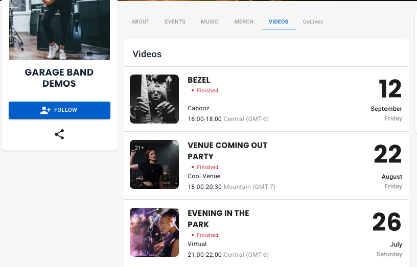 On vyb, you can upload and sell videos that you have previously recorded. Your recordings of old performances are a great way to give your fans more - they want to buy from you. Maybe you had a really hot show last fall or you have early band videos. Maybe you want to...